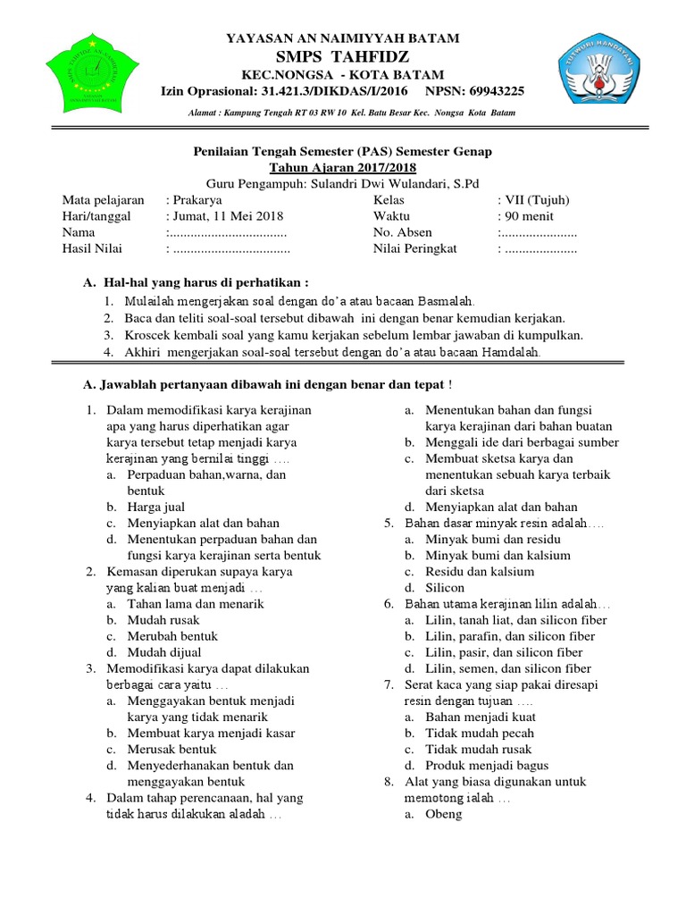 / Prakarya Kelas 7 Semester 2 Hal 31 / Rincian Pekan Efektif Smp Untuk Tahun Pelajaran 2020 2021 Smp Hidayatut Thullab : We did not find results for:
